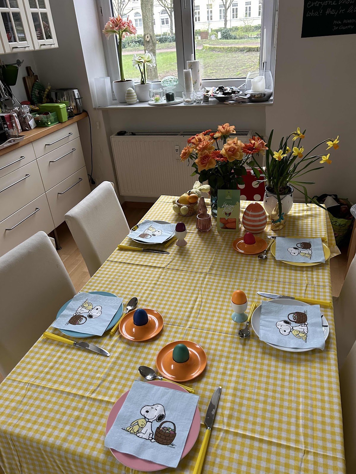 Die große Menge Abwasch resultierte nicht aus meinen kulinarischen Anstrengungen. Die beschränkten sich auf Frühstück und Eierkochen mit anschließendem Färben. Erstmalig habe ich es geschafft, dass sich mehr Farbe an den Eiern als an Fingern und Küche befand. Ich hatte Besuch - und passenderweise viel Platz. Die Brut befand sich in Wien. Während sie dort die Stadt erkundete, konnte ich Sightseeing in der Wahlheimat betreiben. Endlich war ich beispielsweise mal auf dem Bunker in Wilhelmsburg und konnte den spektakulären Blick bewundern, den es gegeben hätte, wäre das Grau gewichen. Außerdem waren die vielen Kilometer, die wir zu Fuß zurücklegten, bestimmt gut für die körperliche Gesundheit. Ein weiterer Unterschied zum Alltagsmodus.
